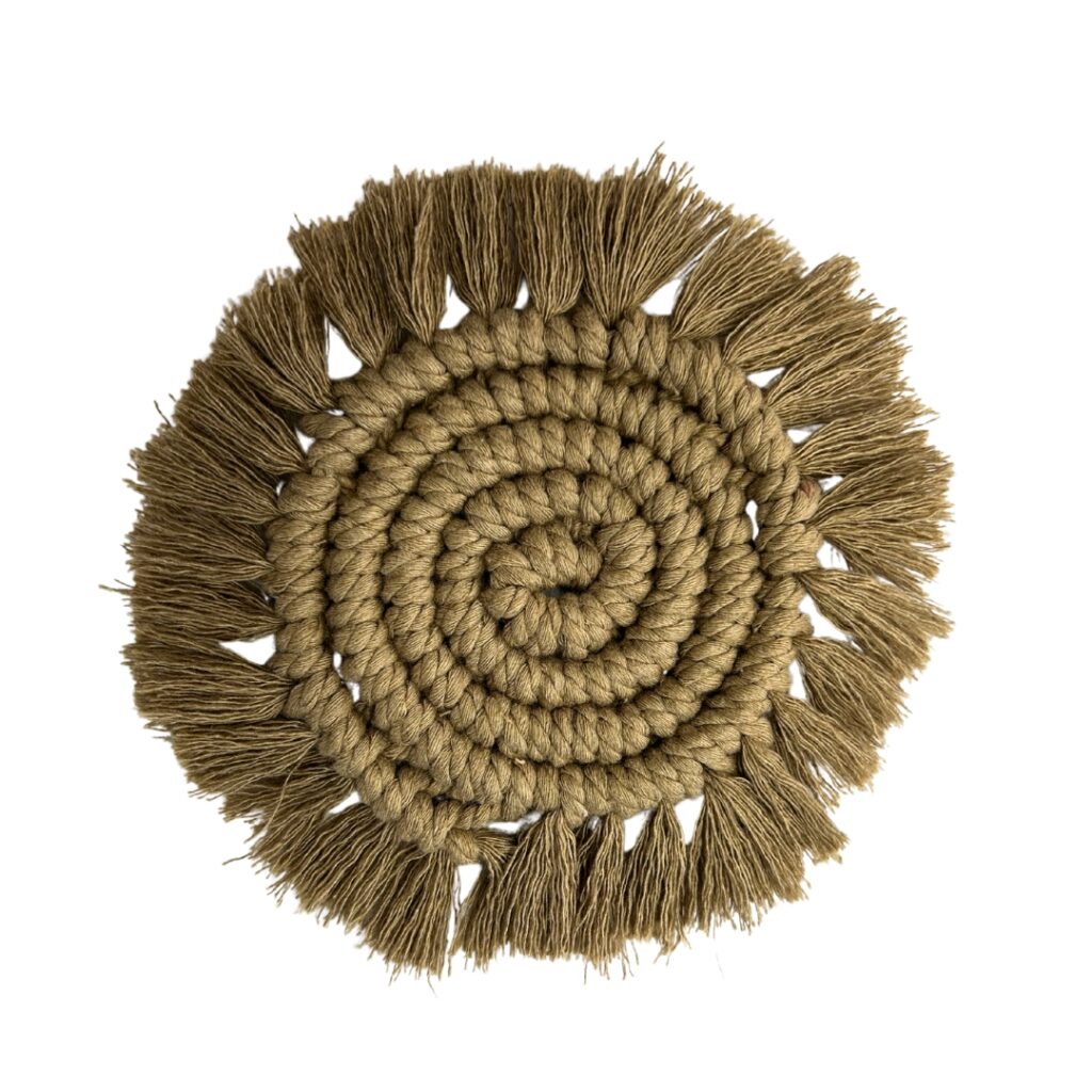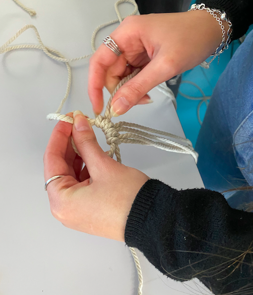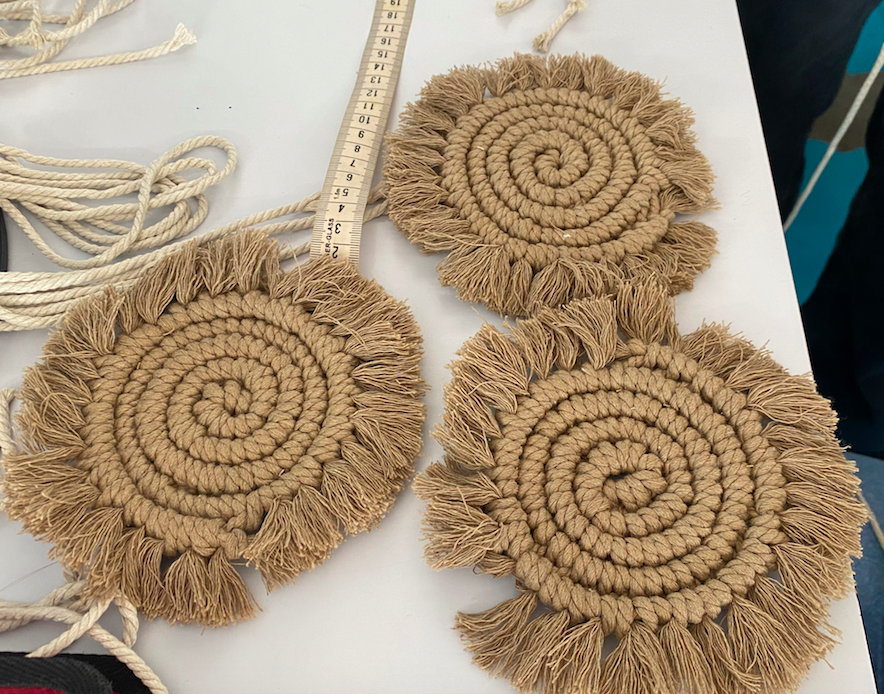- Utilizaremos las técnicas de macramé con la estructura de los posavasos asegurando que los nudos y vueltas queden firmes e uniformes.