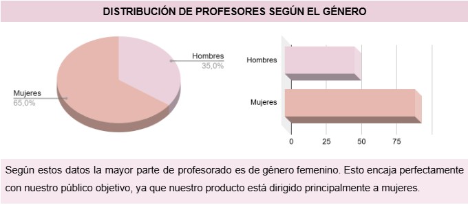 El segmento que hemos elegido para comercializar nuestro producto es el profesorado femenino ya que encaja perfectamente con nuestro productos y son las personas que más nos pueden comprar. No se descarta la posibilidad de que compren las alumnas.